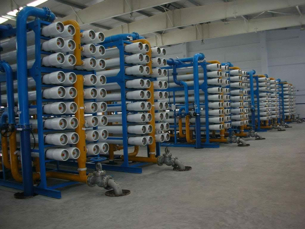 反渗透是一种以压力梯度为动力的膜分离过程,其如同分子过滤器一样可有效地去除水中的溶解盐类胶体细菌和有机物。反渗透过程是自然渗透的逆过程.在使用过程中为产生反渗透过程需用水泵将含盐水溶液施加压力以克服其自然渗透压,从而使水透过反渗透膜.而将水中溶解盐类等杂质阻止在反渗透膜的另一侧;同时为防止原水中溶解盐类杂质在膜表面聚焦,运行时浓水应不断地冲洗膜表面并将浓水中及膜面上的杂质带出继而实现反渗透除盐净化的全过程。